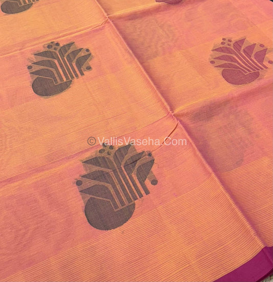 Semi Chanderi Saree - Rust Orange & Purple Combo - VVSCS003