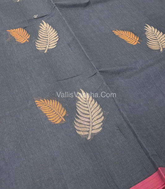 Kalamkari Fancy Cotton - Semi Silk Mixed - Merun with Black - VVKFC001