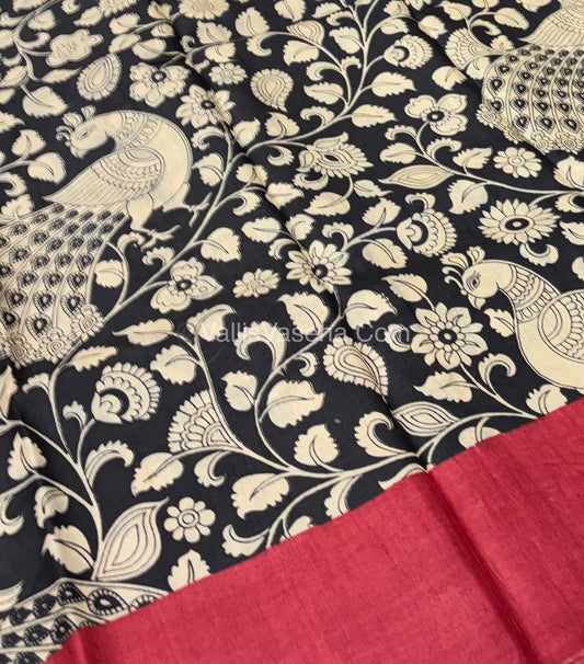 Pure Tussar Silk - Black With Red Shade - VVPTS001