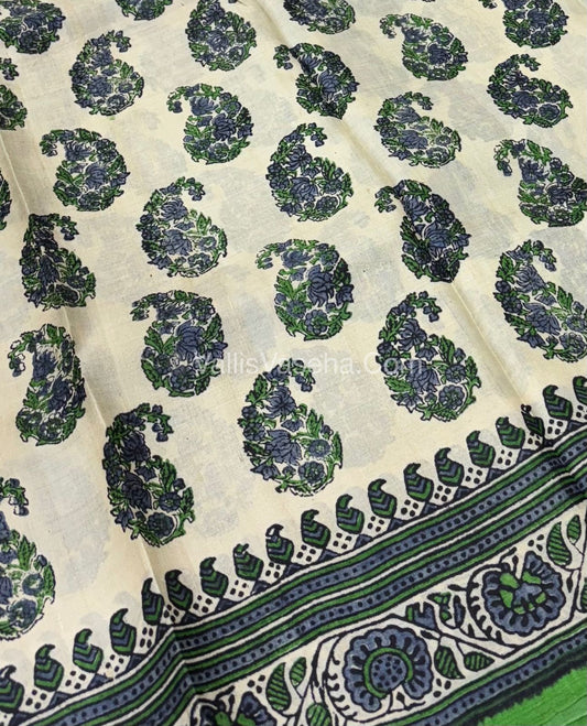 Semi Tussar Silk - Small Mango - - Ramar Green Shade - VVSTS002