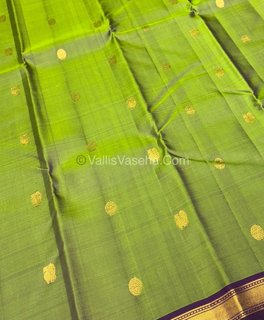 Pure Kanchipuram Silk Saree - Green & Dark Purple Combo - VVPS021