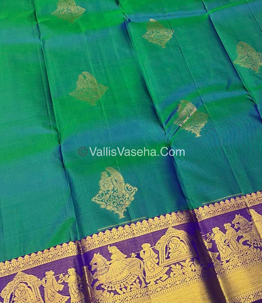 Pure Kanchipuram Silk Saree - Double Tone Peacock Bluish green with Blue Shade - VVPS014