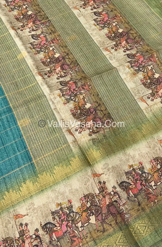 Semi Tussar Silk - Small Mango - - Ramar Green Shade - VVSTS002