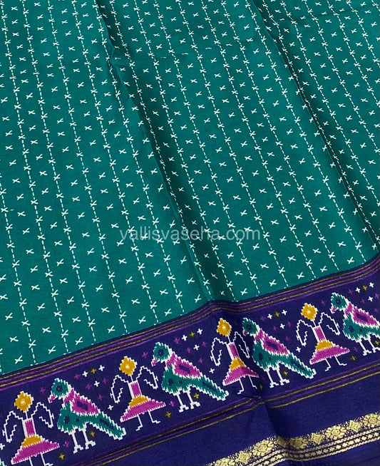 Kanchi Semi Silk - Green with Blue VVKSS001