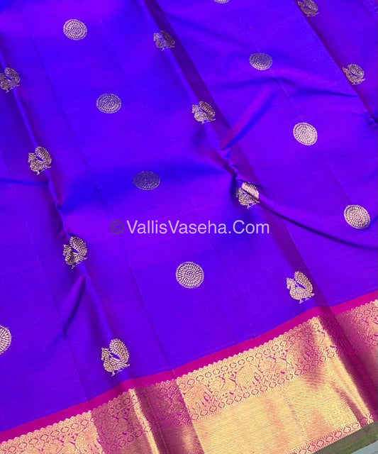 Pure Kanchipuram Silk Saree - Purple & Pink/Green Combo - VVPS014
