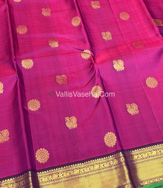 Pure Kanchipuram Silk Saree - Dark Pink & Wine/Green Combo - VVPS014