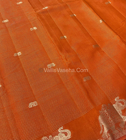 Semi Tussar Silk - Vairavoosi & Elephant Design - Rust Orange shade-VVSTS019