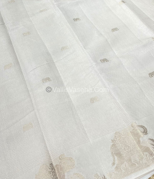 Semi Tussar Silk - Vairavoosi & Elephant Design - Cream shade-VVSTS019