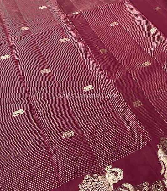 Semi Tussar Silk - Vairavoosi & Elephant Design - Wine shade-VVSTS019