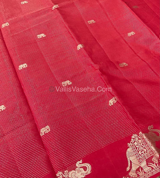 Semi Tussar Silk - Vairavoosi & Elephant Design - Red shade-VVSTS019