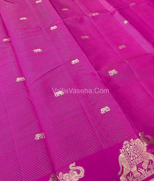 Semi Tussar Silk - Vairavoosi & Elephant Design - Rani Pink shade-VVSTS019