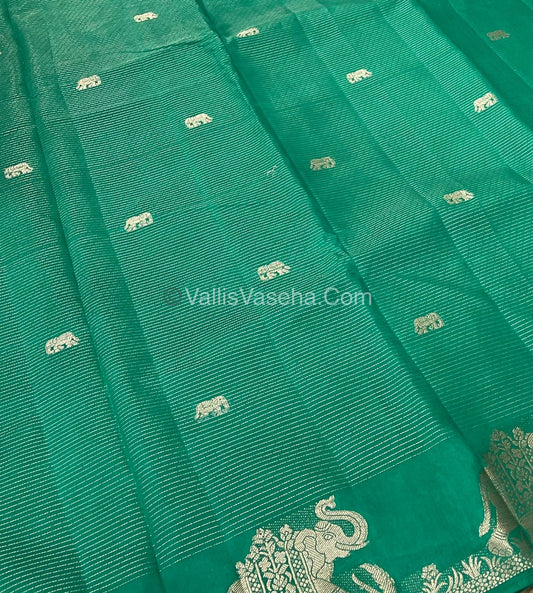 Semi Tussar Silk - Vairavoosi & Elephant Design - Green shade-VVSTS019
