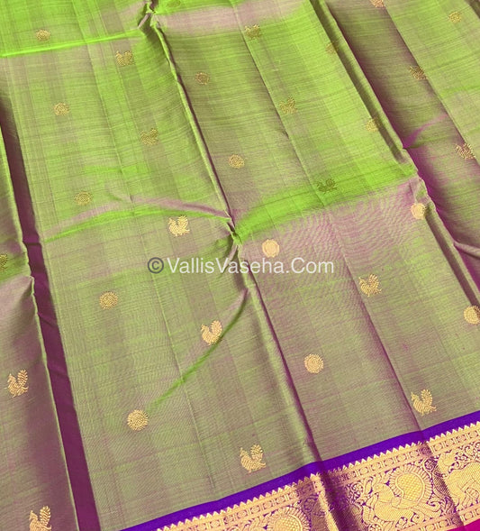 Pure Kanchipuram Silk Saree - Manthulir Green & Purple/Pink Combo - VVPS014