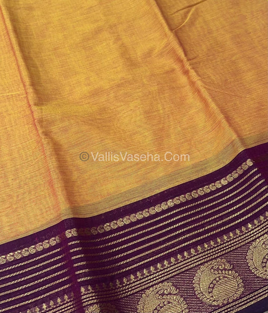10 yards - Pure Silk Cotton - Purple With Mustard Yellow - VVTYSC001