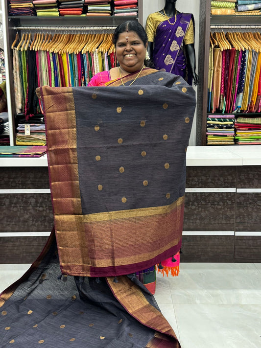 Bamboo Silk Saree - Grey with Dark Purple Shade - VVBSS001