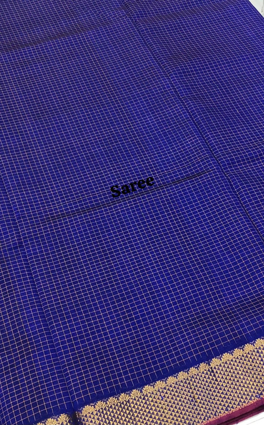 10 yards - Pure Silk Cotton - Blue Zari Checks - VVTYSC001