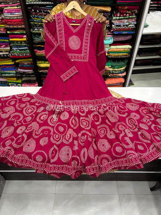 Anarkali - Pink Shade - Salwar, Kameez & Duppatta(3pc)- Fancy Cotton - VVRAS001