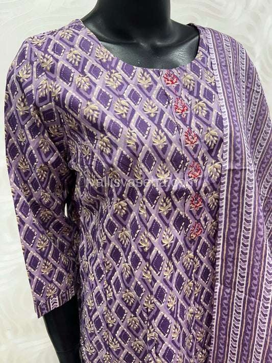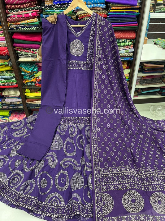 Anarkali - Purple Shade - Salwar, Kameez & Duppatta(3pc)- Fancy Cotton - VVRAS001