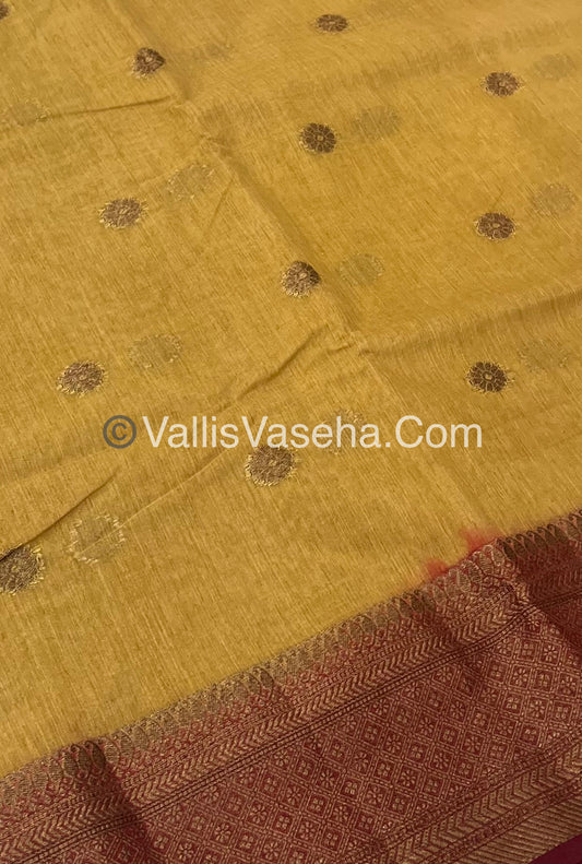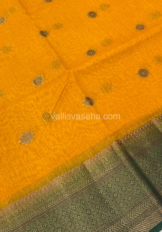 Bamboo Silk Saree - Yellow with Green Shade - VVBSS001
