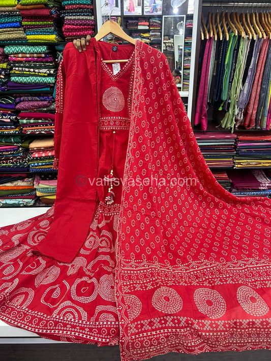 Anarkali - Red Shade - Salwar, Kameez & Duppatta(3pc)- Fancy Cotton - VVRAS001