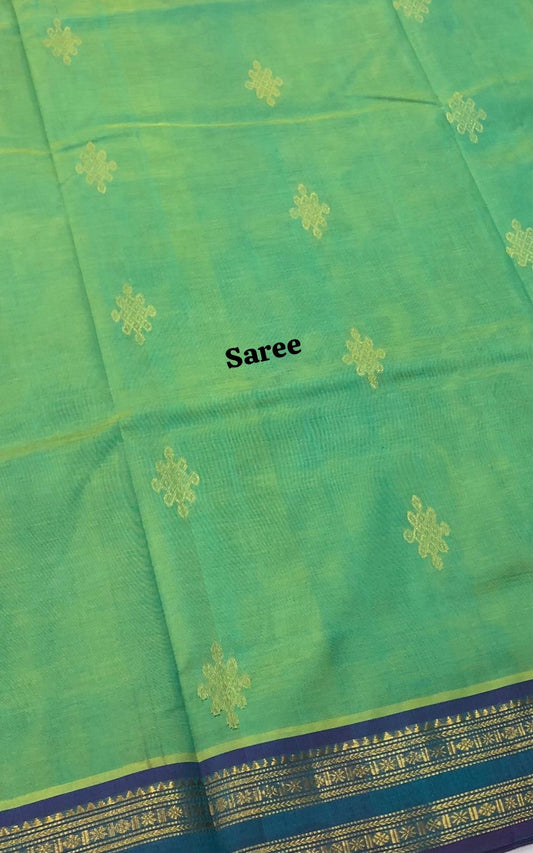 10 yards - Pure Silk Cotton - Kolam Design - Green with Purple - VVTYSC001