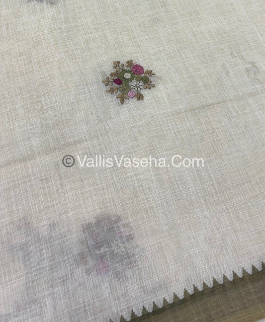French Knot - Tissue Saree - Cream With Brown Shade - VVLFN006