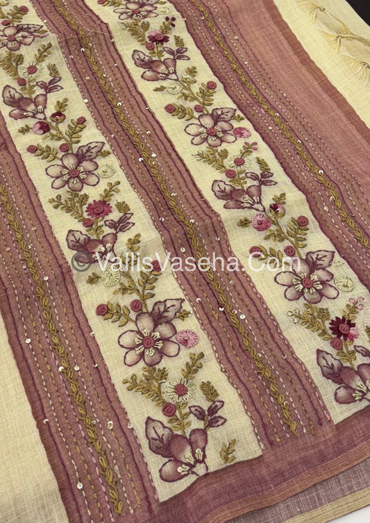 French Knot - Tissue Saree - Cream With pink Shade - VVLFN006