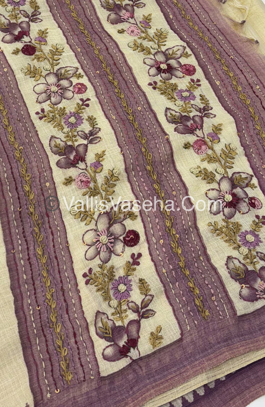 French Knot - Tissue Saree - Cream With purple Shade - VVLFN006
