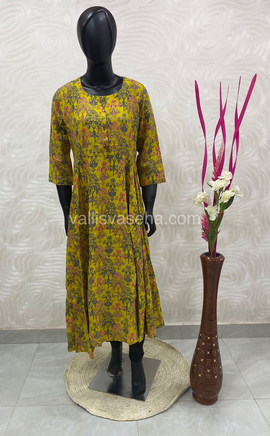 Ready Made - Long Floor Length Kurti - Yellow Color - VV108447 & VV108448