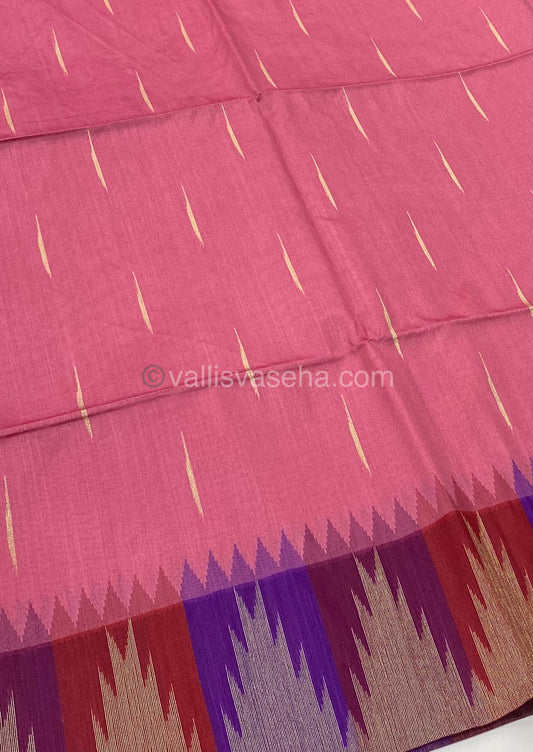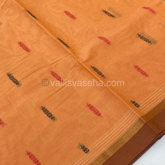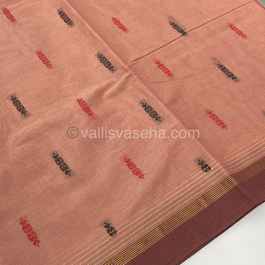 Pure Korvai Silk Cotton - Peach with Blue - VVKSC012