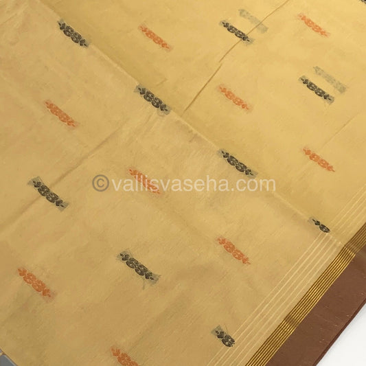 Kerala Cotton Saree - Cream With Golden Border - VVKCS001