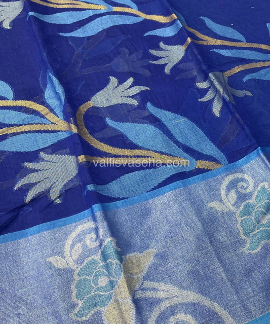 Banarasi Pochampally Weaving Semi Soft Cotton Saree - Blue with Blue - VVBPS001