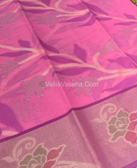 Banarasi Pochampally Weaving Semi Soft Cotton Saree - Light Pink - VVBPS001