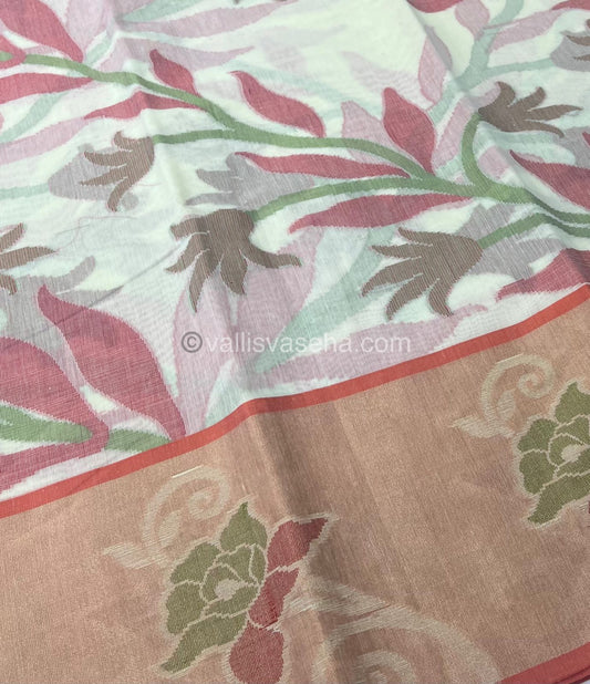 Banarasi Pochampally Weaving Semi Soft Cotton Saree - Cream with Orange - VVBPS001