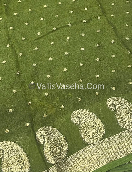 Semi Chanderi Saree - Green & Green Combo - VVSCS003