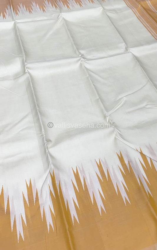 Pure Kanchipuram Silk Saree - Thalampoo - Cream with very light Yellow( Santhanam Shade)- VVPS003
