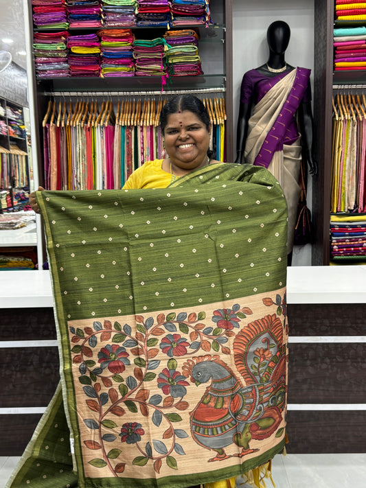 Semi Chanderi Saree - Fusion Of Bandhini & Madhubani- VVSCS002