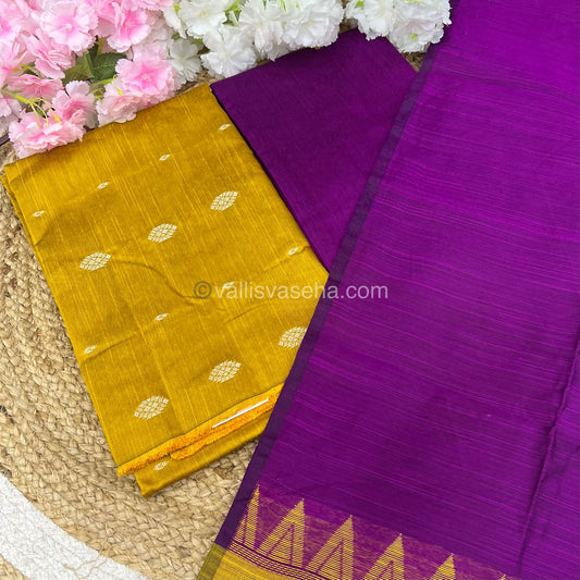 Unstitched Salwar Material -Raw Silk - Mustard Yellow with Purple - VVUSM004