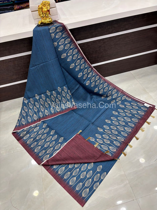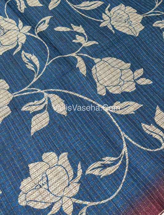Art Tussar / Art Silk - Blue & Maroon Shade - VVATS003