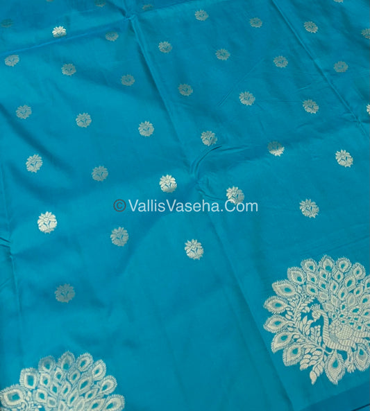 Semi Soft Silk - Peacock Butta Border - Peacock Blue Shade -VVSSS011