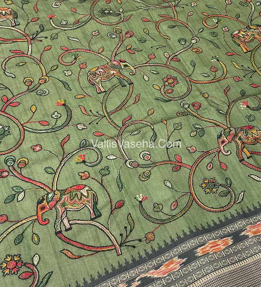 Semi Tussar - Kantha Work Embroidery - Green Shade - VVSTK001