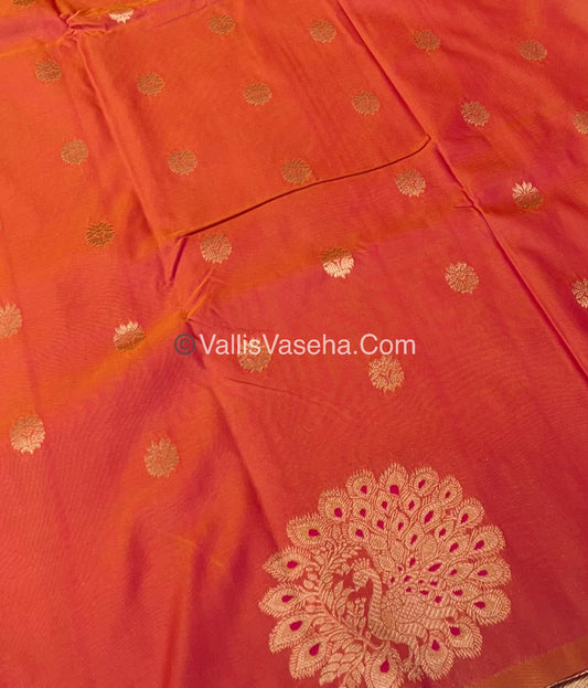 Semi Soft Silk - Peacock Butta Border - Peachish Orange Shade -VVSSS011