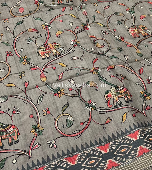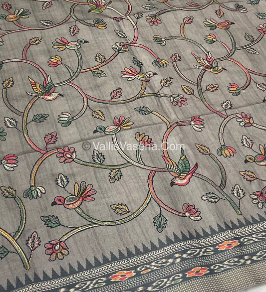 Semi Tussar - Kantha Work Embroidery - Grey Shade - VVSTK001
