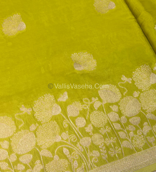 Banarasi Premium Viscose Saree - Lemon Green Shade - VVBPV001
