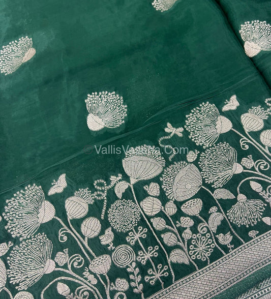 Banarasi Premium Viscose Saree - Dark Green Shade - VVBPV001