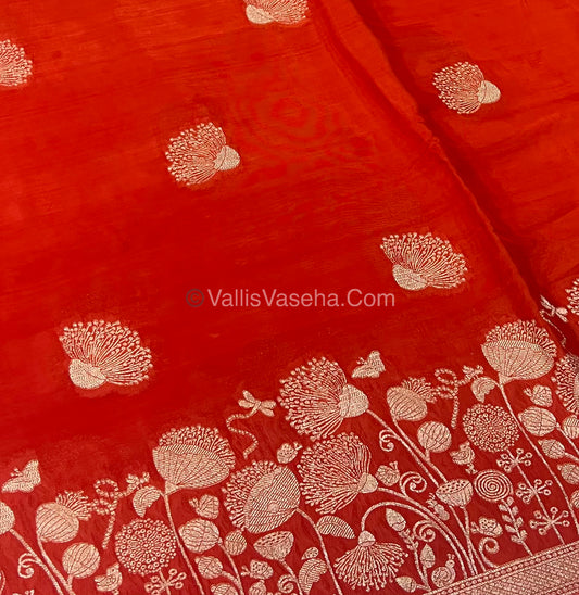 Banarasi Premium Viscose Saree - Orange Shade - VVBPV001