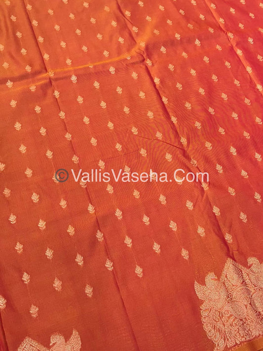 Semi Soft Silk - Peacock & Mango Butta Border - Peachish Orange Shade -VVSSS015
