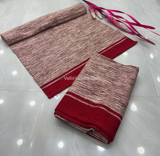 Semi Raw Silk - Half White with Merun Shade - VVRS002