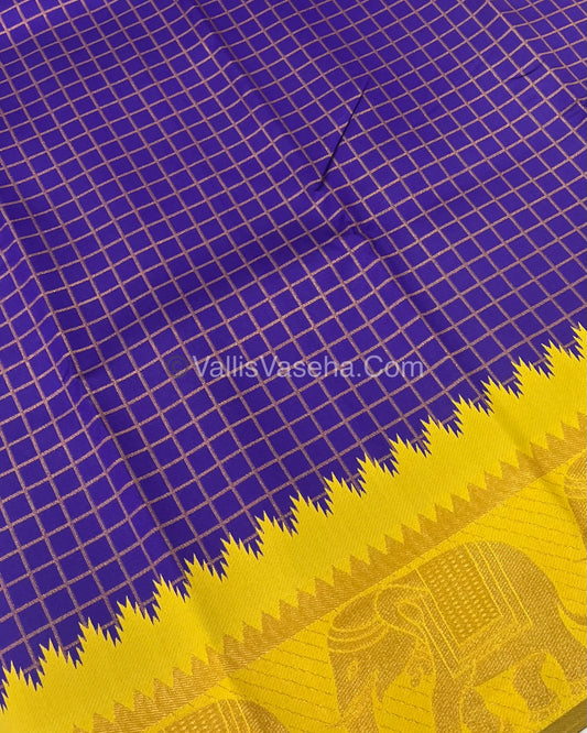 Semi Silk Saree - Kanchi Silk Style - Elephant Border - Violetish Blue with Yellow- VVSSS005