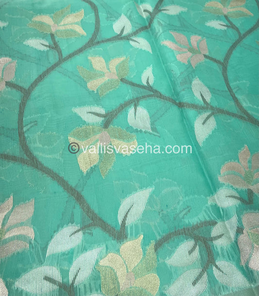 Semi Raw Silk with Jamdhani Design Weaving - sea green Shade - VVRS001